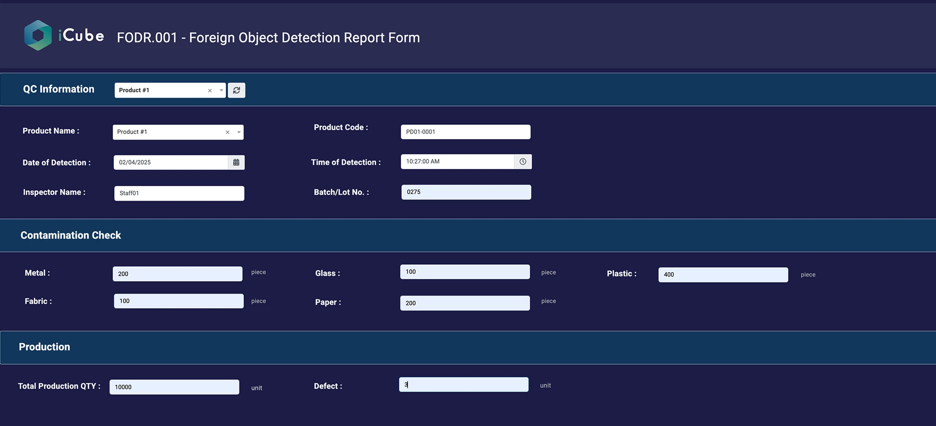 Custom your form by using the drag-and-drop function by low code system Integrate with machine/sensor or file upload data, then you can manually input additional data as needed.